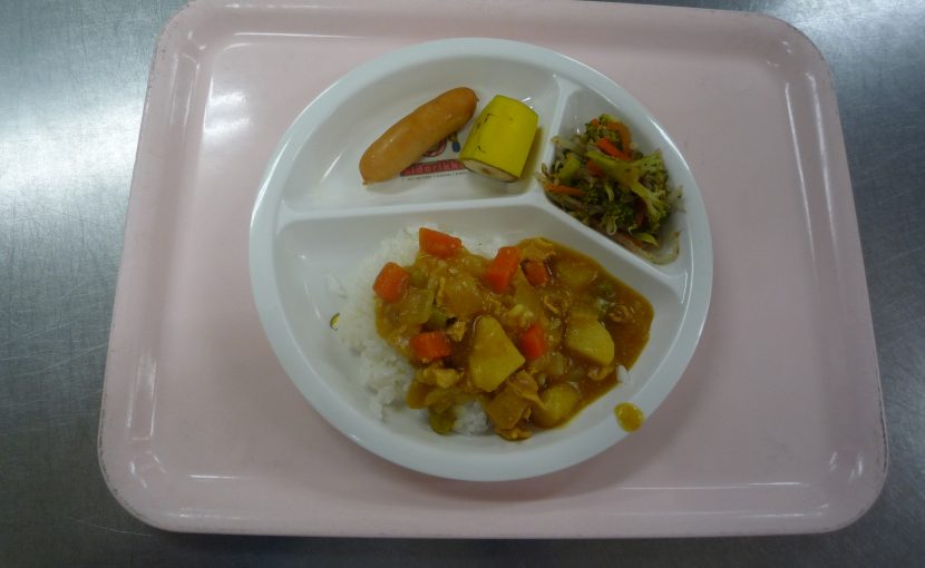 炒ったかつお節が香ばしい和え物です。園で子どもたちが育てている夏野菜は給食に入れたり、別メニューで出したり、毎日いろいろな学年が収穫した野菜を給食室に持ってきてくれます。