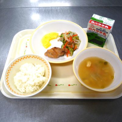 今日の給食 2023.08.9 今日の給食 8月9日(水) ・玄米入りごはん ・さわらの野菜焼き ・じゃが芋のみそ汁 ・ピーマンとナスの炒め物 ・牛乳 ・オレンジ さわらはマヨネーズ(卵不使用)で和えた野菜ソースをかけて焼きました。 今日の給食 今日の給食前の記事 お兄さん・お姉さん先生 ありがとう!次の記事