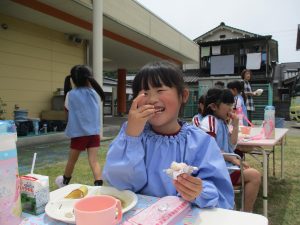 いつもと違った雰囲気で、大好きな給食も もっともっとおいしかったそうです!!