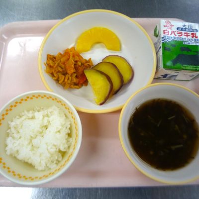 今日の給食 2024.08.2 今日の給食 8月2日(金) ・ゆかりごはん ・とうがんのそぼろ煮 ・おくらのごま和え ・じゃがいものコンソメスープ ・牛乳 ・オレンジ 年に一度の登場の冬瓜です。ほろっとやわらかい食感です 今日の給食 今日の給食前の記事 今日の給食次の記事