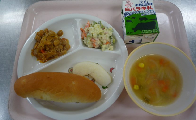 今日の給食 2025.10.9 今日の給食 10月9日(木) ・アップルパン ・ポークビーンズ ・カリフラワーのサラダ ・コーンスープ ・梨 ・牛乳 お肉(豚肉)と畑の肉(大豆)が入っているポークビーンズはしっかりと食べ応えがあります! 今日の給食 今日の給食前の記事 今日の給食次の記事