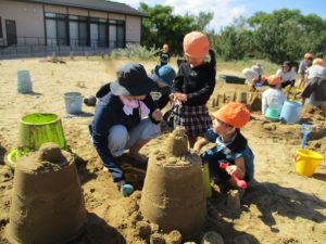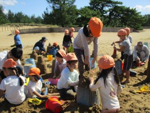 年長さんは、鳥取砂丘の大きな大きな砂場で「すなばようちえん(砂のルネッサンスさん主催)」に参加させていただきました。