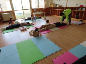 自分に集中して、呼吸を感じて…大人の気持ちがゆったりリラックスすると、その場にいる子ども達もゆったりと落ち着いて過ごせたようです。