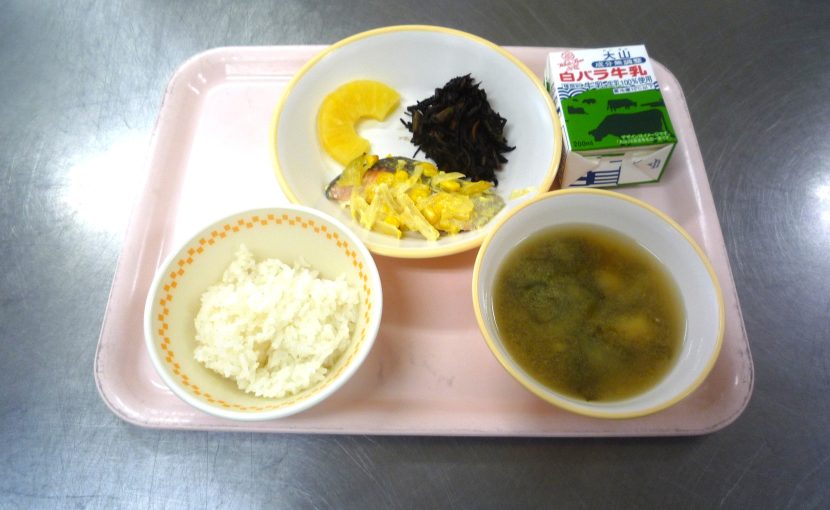 今日の給食 2025.12.18 今日の給食 12月18日(木) ・ごはん ・鮭のコーン焼き ・ひじきの炒め煮 ・わかめのみそ汁 ・パイン缶 ・牛乳 コーンとマヨネーズ(卵不使用)でお魚がとてもおいしくなりました。 今日の給食 誕生会(12月)前の記事 今日の給食次の記事