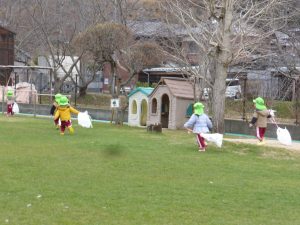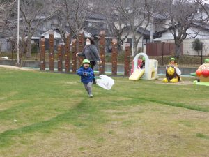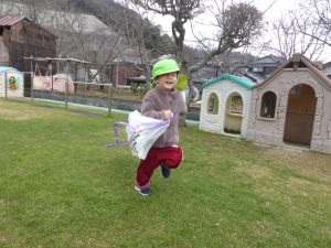 ♪たーこー たーこー あーがれー!♪ と凧揚げの歌を口ずさみながら、園庭中を駆け回っていました。