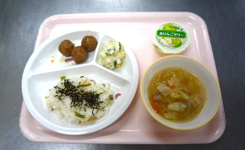 今日の給食 2026.01.29 今日の給食 1月29日(木) ・ちらし寿司 ・ミートボール ・ポテトサラダ ・野菜スープ ・ゼリー ミートボールはうす味のものを使用しています。1月生まれさん、お誕生日おめでとう!! 今日の給食 今日の給食前の記事