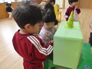 3歳未満児さんは、たくさんの鬼ちゃんたちと一緒に豆まき~!