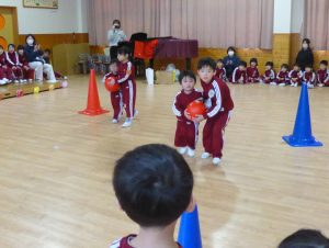 小さいお友だちに目線を合わせたり、ゆっくりとボールを運ぶ年長さんの優しさに大感動でした。