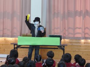 いなば幼稚園・いなば保育園に素敵なお客様(!?)「Mr.アリック」さんが来てくれました!
