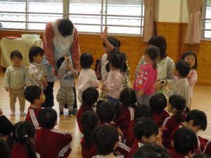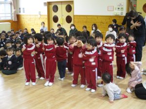1歳児・満1歳児さんは、一人ずつお返事を見せてくれました。